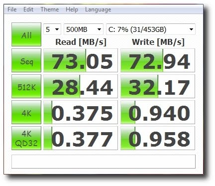 Hard disk: 500GB 5400RPM (Toshiba MK5065GSX)
